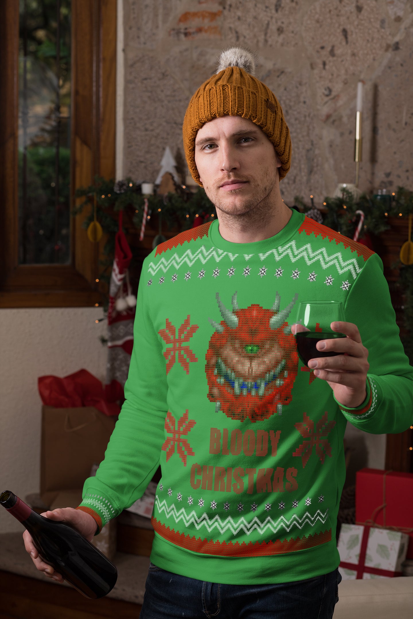 It’s time to lay down your weapons and enjoy the holidays. Wear this sweater so you can show the cacodemon you are willing to make a temporary truce.